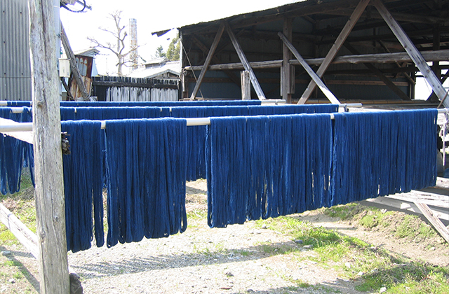 日本人にとって、藍の鮮やかで深みのある色合いは、心を癒してくれる最も普遍的な色として歴史的にも愛されてきた色です。天然藍は木綿によく染まり、日光、水洗いに強いため、洗うほどに深みと落ち着きのある風合いが増してきます。風化とともに高まる香りには虫除けの効果もあり、また藍には皮膚を保護してくれる薬効もあるといわれており、衣料に大変適しています。